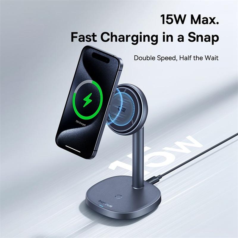 Melhore a sua rotina de carregamento com o Baseus Orbit 2 Pro Air-Cooled 2-in-1 Wireless Charging Stand, onde a inovação se alia à praticidade para uma experiência de utilização sem paralelo.