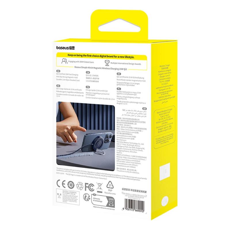 Carregador sem fios magnético Qi2 Baseus Simple Mini4 15W com suporte