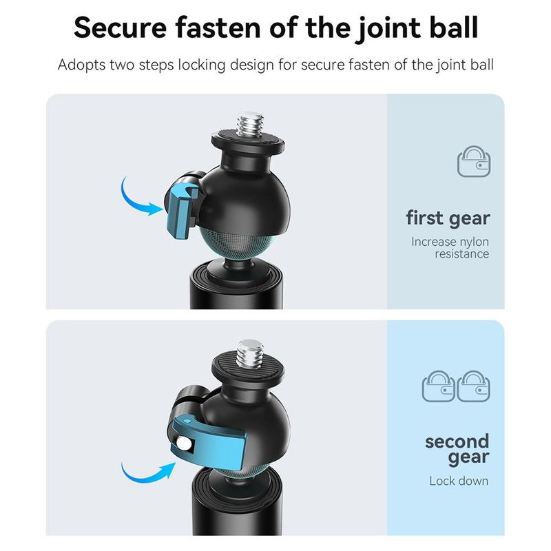 - Montagem de parafuso de 1/4": Compatível com DJI, GoPro, Insta360 e outras câmaras.