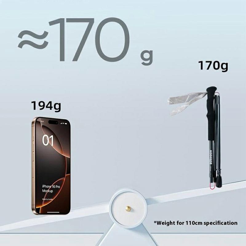 - Liga de alumínio leve - Pesa apenas 180g para um transporte sem fadiga em longas caminhadas.