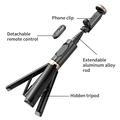 Q12 Bastão de selfie extensível e tripé com controlo remoto Bluetooth - Suporte para telemóvel portátil e estável