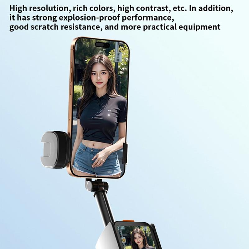 O ecrã HD de 2,0 polegadas incorporado (resolução de 240×320) proporciona uma pré-visualização em tempo real da câmara traseira do seu telemóvel, eliminando os ângulos mortos e garantindo um enquadramento perfeito. Isto dá um toque profissional às suas fotografias e vídeos.