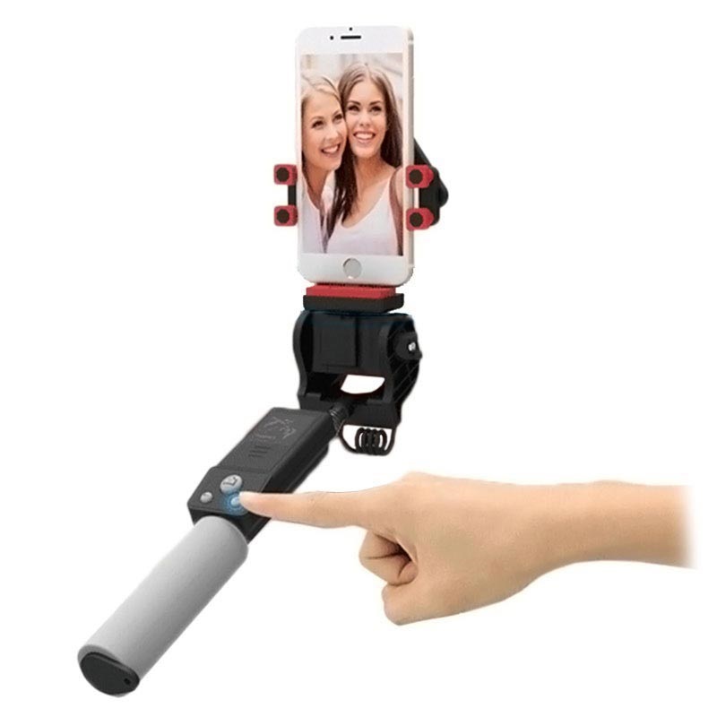 - Bastão para selfies extensível que possui Bluetooth 4.0 e rotação a 360 graus