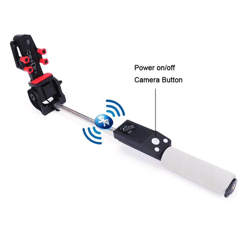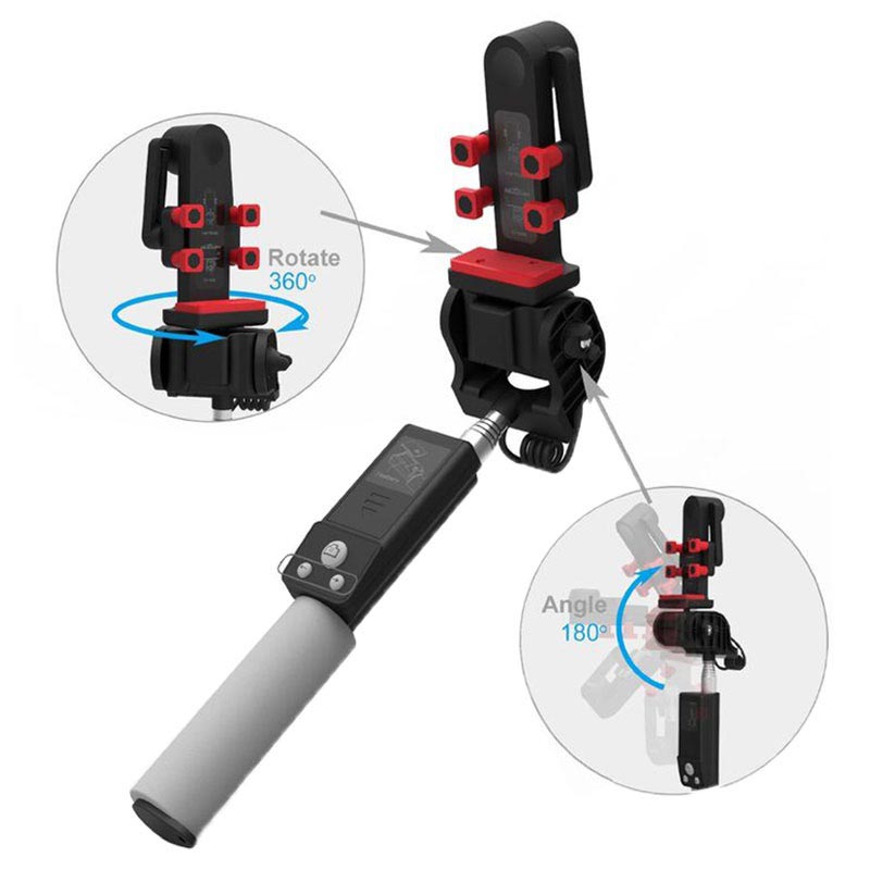 Este bastão para selfies sem-fios Bluetooth é compatível com smartphones que possuam iOS e Android e ostenta um braço extensível (até 98cms) e uma cabeça ajustável, que gira completamente a 360 graus. O controlo tem três botões tácteis que são fáceis de controlar e lhe permitem mover a cabeça da esquerda para a direita com um simples pressionar de botão.