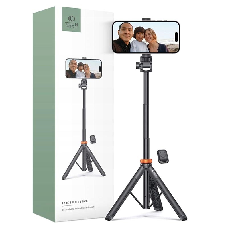 - Tech-Protect L03S Selfie Stick com controle remoto Bluetooth e tripé