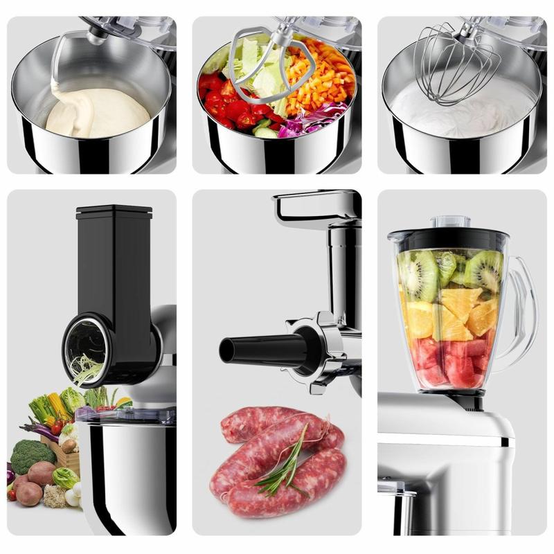Batedeira multifunções de 5.5L - Amassadeira e processador de alimentos 5 em 1 para cozer e cozinhar (ficha UE, sem BPA)