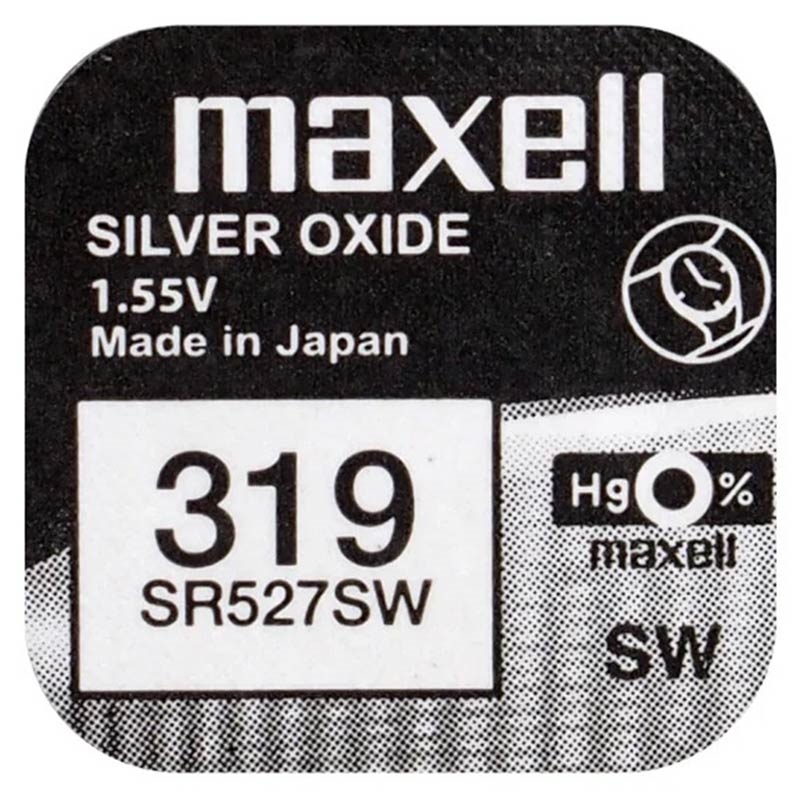 Pilha de óxido de prata para relógios Maxell 319 - Pilha de botão de 1,55 V SR527SW/SR64