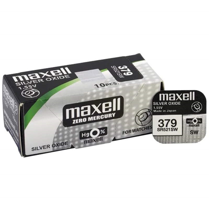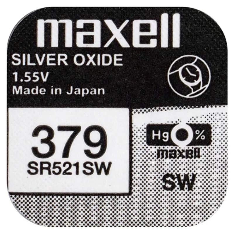 Pilha de óxido de prata para relógios Maxell 379 - Pilha tipo botão de 1,55 V SR521SW/AG0