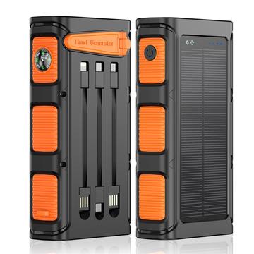 Carregador portátil solar com manivela de 20000mAh, carregamento rápido PD de 20 W, lanterna LED e cabos integrados