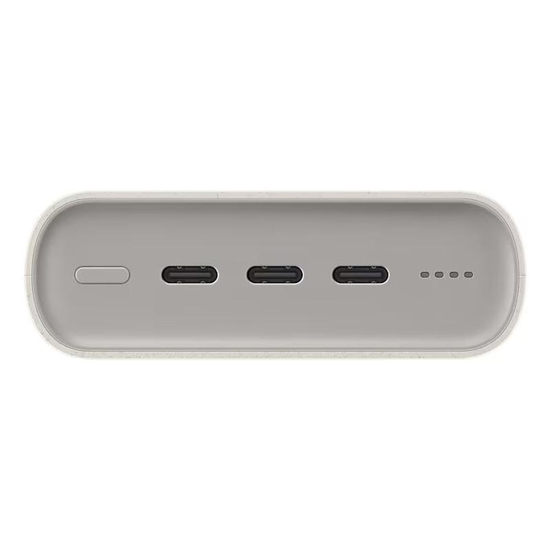 A Bateria Samsung 20000mAh é um carregador portátil de alta capacidade com capacidades de carregamento super-rápido. Equipada com Super Fast Charge 2.0 de 45W e Power Delivery 3.0, esta bateria pode recarregar rapidamente dispositivos Samsung e de terceiros compatíveis, incluindo a própria bateria, quando está fraca. Também possui conetividade USB-C para garantir que pode carregar os seus dispositivos em movimento. O design da porta tripla permite o carregamento simultâneo de três dispositivos, proporcionando maior comodidade e energia quando é mais necessário. Esta bateria também é amiga do ambiente, uma vez que foi cuidadosamente concebida utilizando materiais reciclados com certificação UL para reduzir as emissões de carbono e preservar recursos valiosos, ao mesmo tempo que dá uma nova vida aos resíduos de consumo.