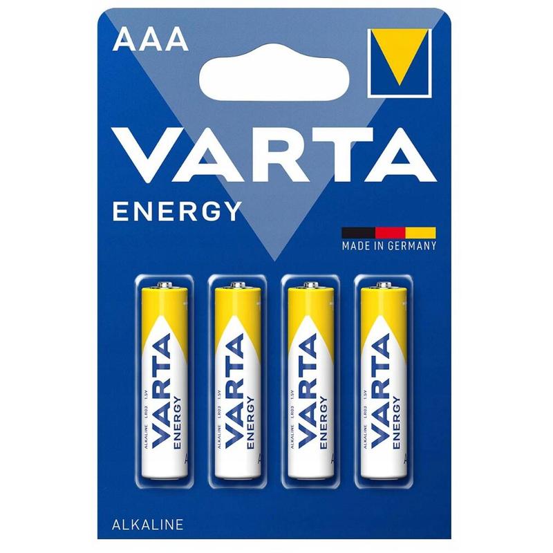 A pilha Varta ENERGY LR03/AAA fornece energia fiável e duradoura para os seus aparelhos do dia a dia. Estas pilhas alcalinas são ideais para utilização em controlos remotos, relógios, lanternas e outros aparelhos domésticos. Fabricadas na Alemanha, são concebidas para proporcionar um desempenho consistente e durabilidade.