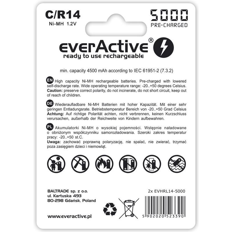 Baterias recarregáveis EverActive Professional Line EVHRL14-5000 Ni-MH R14/C 5000mAh - 2 unidades.