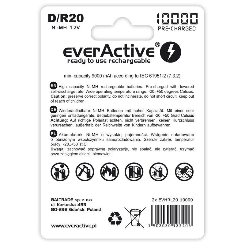 Baterias recarregáveis EverActive Professional Line EVHRL20-10000 Ni-MH R20/D 10000mAh - 2 unidades.
