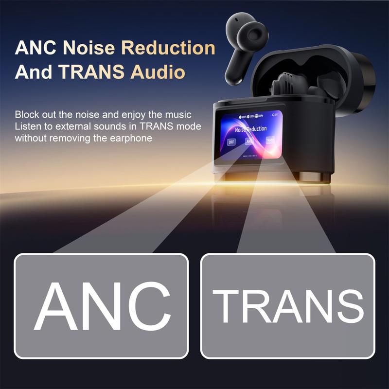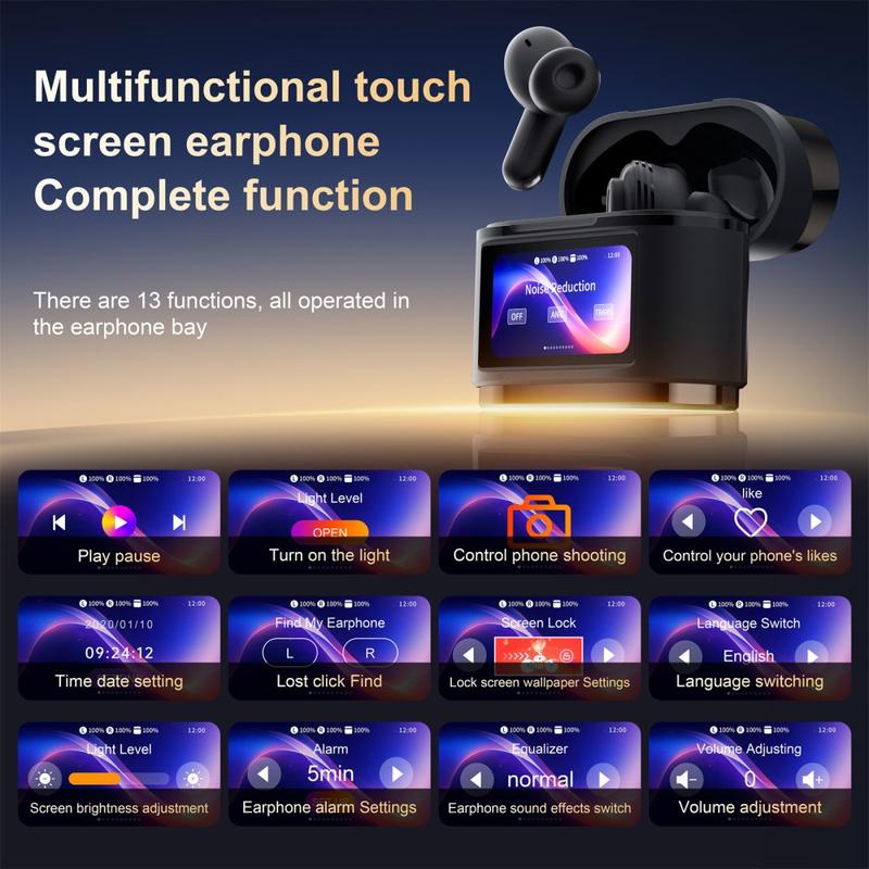 BD2 Smart Digital Display Auscultadores sem fios / Auscultadores TWS com estojo de carregamento - Ecrã tátil, cancelamento de ruído ANC e ENC