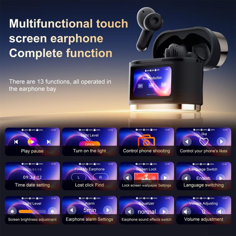 BD2 Smart Digital Display Auscultadores sem fios / Auscultadores TWS com estojo de carregamento - Ecrã tátil, cancelamento de ruído ANC e ENC