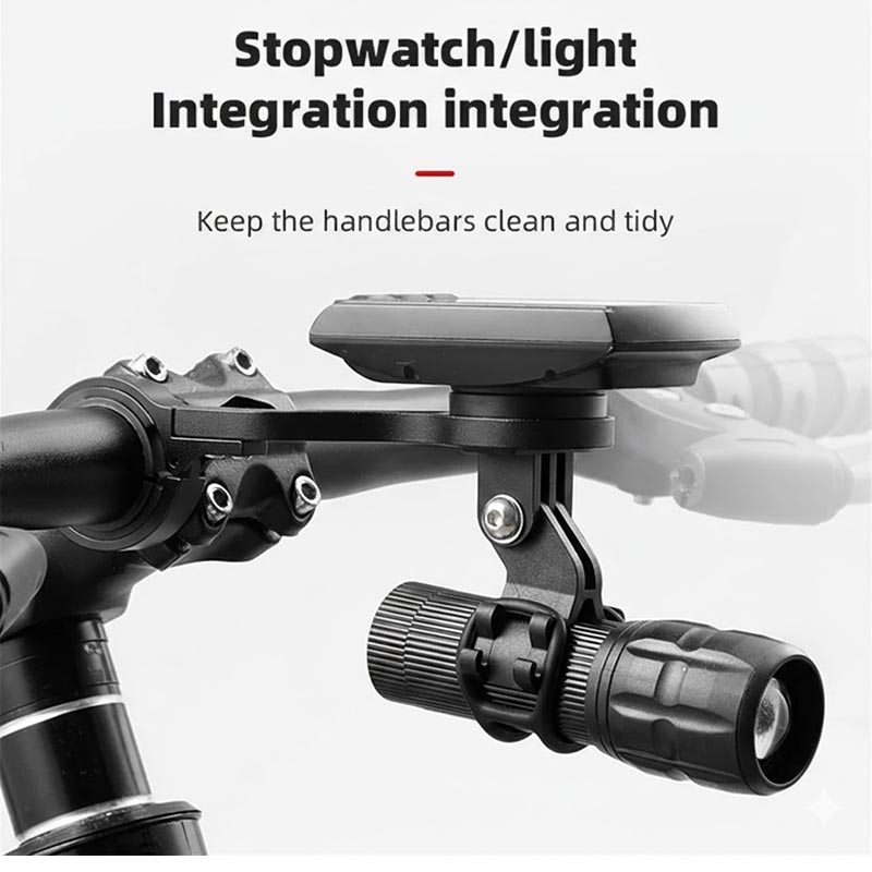 - O design 2 em 1 combina o suporte do computador de bicicleta e o suporte de luz numa única unidade