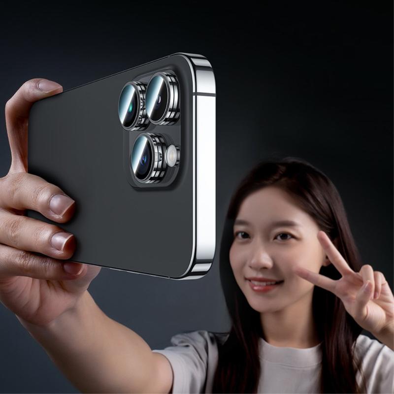 BENKS 3Pcs / Set Camera Lens Protetor para iPhone 15 Pro / 15 Pro Max Corming Grila Glass Lens Film with Aluminum Alloy Frame - Preto