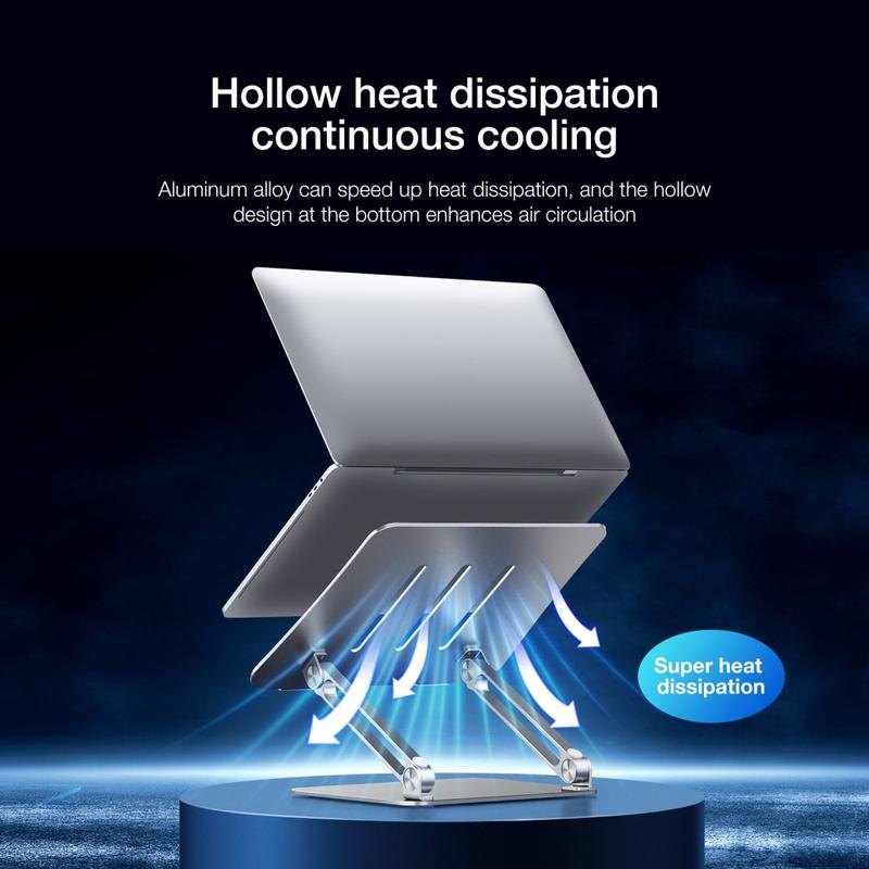 Ventilação - Fabricado em liga de alumínio de alta qualidade, suficientemente estável para suportar o seu computador portátil, o design do orifício de arrefecimento proporciona mais fluxo de ar para arrefecer melhor o seu computador portátil