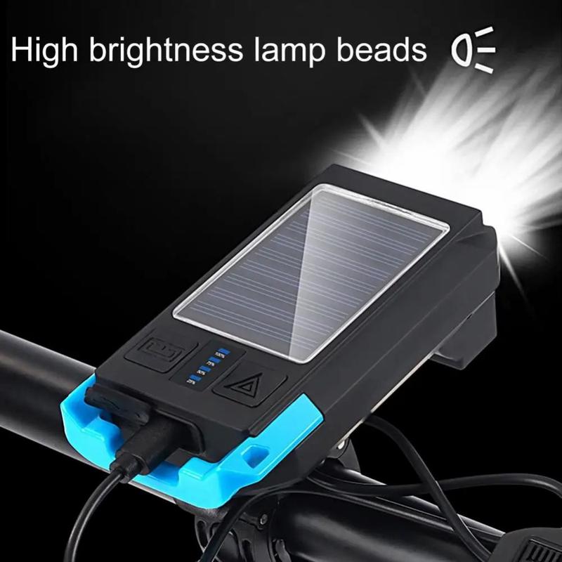 BG-1706 Luzes de bicicleta recarregáveis USB+Solar à prova de água 6 modos de luz Farol duplo de bicicleta com alarme de buzina - Vermelho