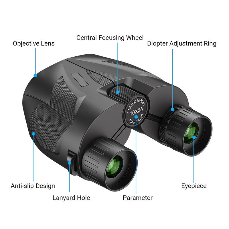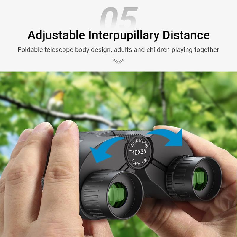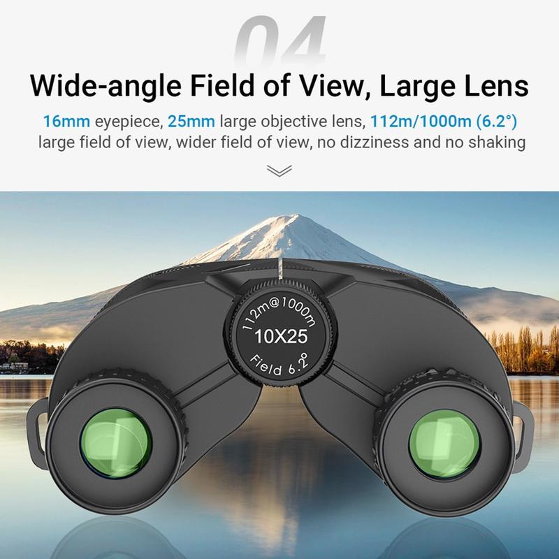 Binóculos portáteis Apexel 10x25 HD - Ótica BAK4 FMC dobrável e compacta para observação de aves, concertos e utilização no exterior