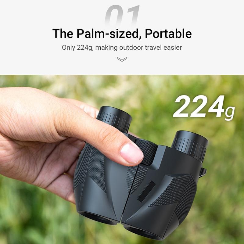 Os binóculos APEXEL 10×25 HD combinam ótica de alta qualidade com um design dobrável compacto e leve - perfeitos para viagens, concertos, caminhadas, observação de aves e observação diária ao ar livre. Pesando apenas 224 g e suficientemente pequenos para caberem na palma da mão, oferecem uma portabilidade excecional sem comprometer a nitidez ótica.