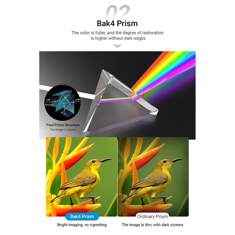 - Os prismas BAK4 oferecem maior luminosidade e melhor qualidade de arestas do que os prismas BK7
