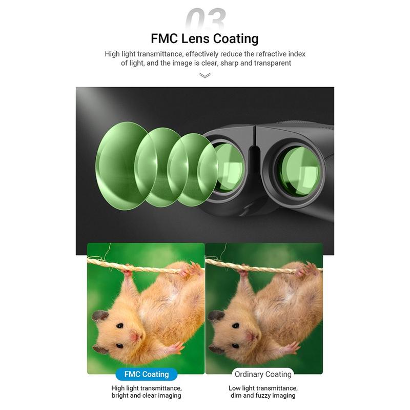 O APEXEL 10×25 oferece um grande desempenho ótico numa estrutura pequena. Com prismas BAK4, revestimentos FMC, um amplo campo de visão e um design de bolso dobrável, são perfeitos para viajantes e amantes do ar livre que desejam clareza sem carregar equipamentos volumosos.