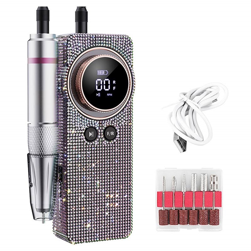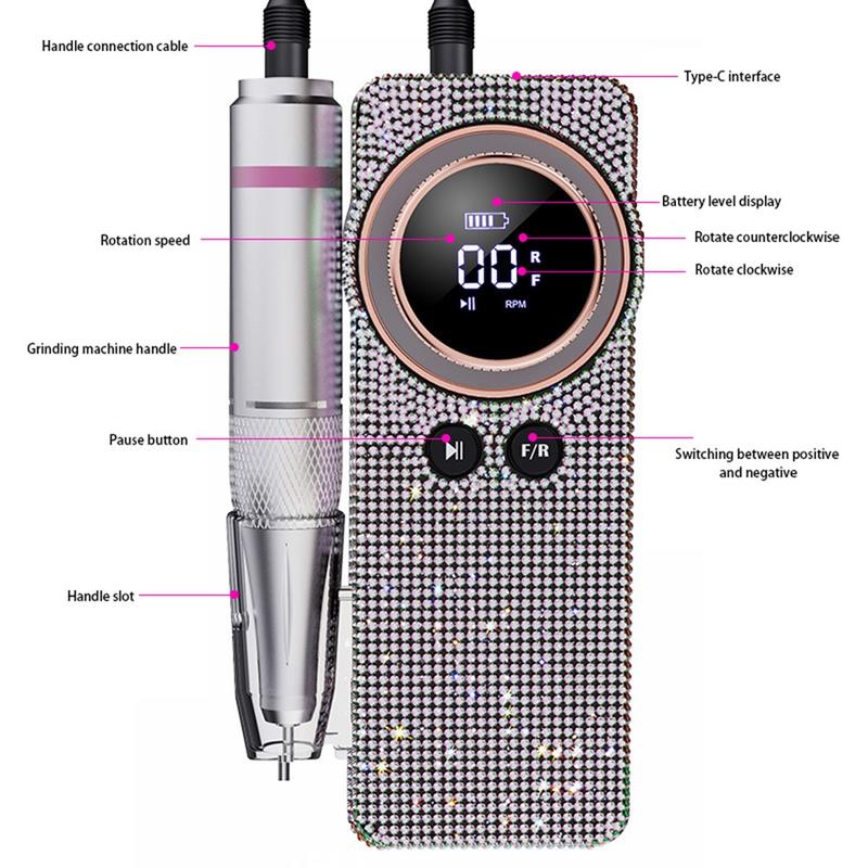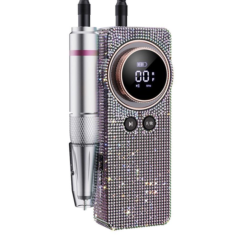 BLUEQUE BQ-108 - Broca elétrica para unhas com design em diamante para gel e acrílico - Lixa de unhas recarregável de 35 000 RPM com ecrã LCD