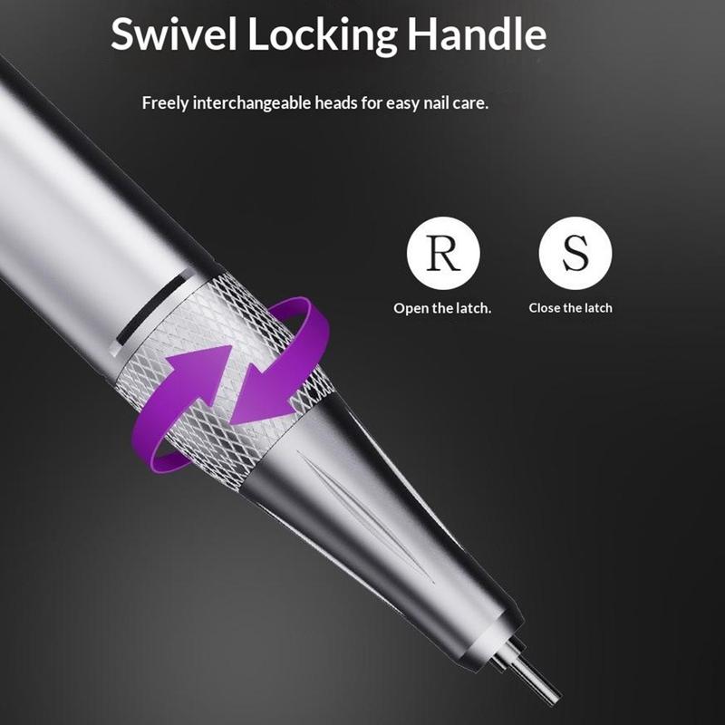 Com um motor de alta velocidade que atinge até 35 000 RPM, proporciona um funcionamento suave e consistente para modelar, limar, refinar e cuidar das unhas em geral. O ecrã LCD facilita a monitorização da velocidade, do nível da bateria, do sentido de rotação e do estado de pausa, enquanto a pega de bloqueio rápido permite trocar facilmente as brocas sem ferramentas adicionais. A sua bateria recarregável suporta até 8 horas de utilização, tornando-a prática para sessões mais longas em casa, em salões de beleza ou em viagem.