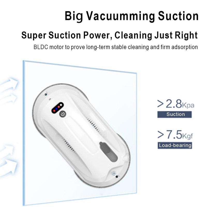 - Sucção potente e eficiência de limpeza: O motor sem escovas de 2600Pa proporciona uma forte sucção, fixando firmemente o robot a superfícies de vidro verticais. Limpa a um ritmo de 4 minutos por metro quadrado, o que o torna rápido e eficaz.