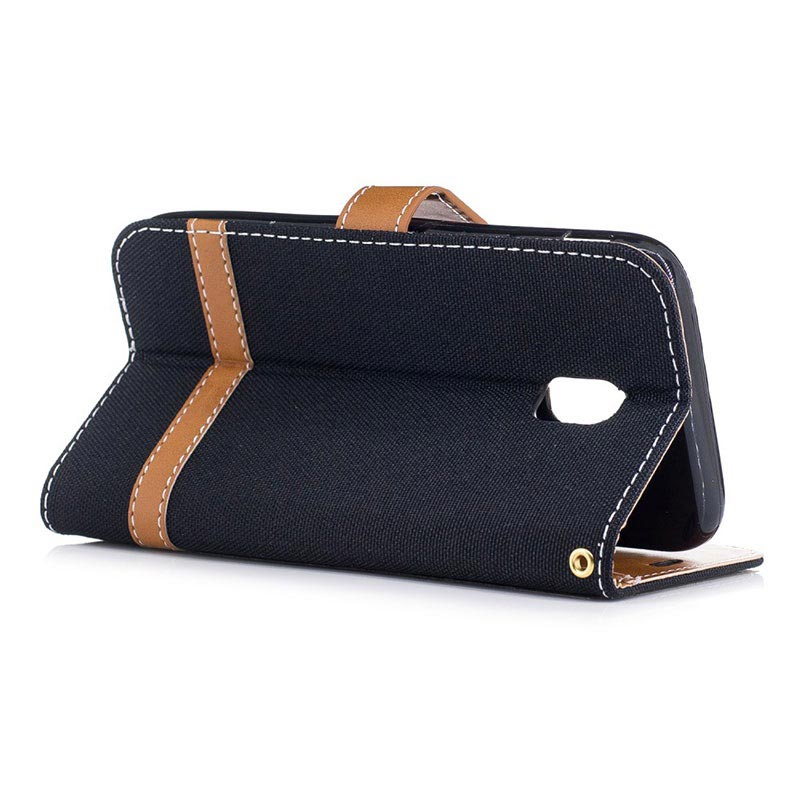 Com uma mistura de tela, poliuretano e TPU, esta capa é uma companhia ideal para o seu Samsung Galaxy J3 (2017). Para além de manter o seu smartphone seguro, também tem ranhuras para guardar cartões de crédito ou itens de tamanho semelhante, para que possa finalmente despedir-se da sua antiga carteira!