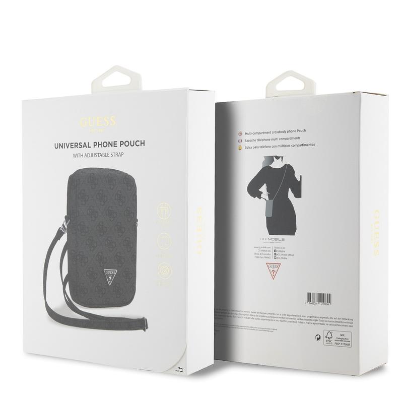 A bolsa para telemóvel Guess PU 4G Triangle Logo com fecho é a bolsa de ombro perfeita para quem quer transportar o seu telemóvel com estilo e proteção. Fabricada em pele PU de alta qualidade, apresenta uma superfície finamente texturada com o icónico logótipo Guess. A parte interior é reforçada com uma palmilha macia, proporcionando um ambiente confortável e protetor para o seu telemóvel. Com o seu design simples e fecho de correr, esta bolsa oferece uma forma luxuosa e elegante de transportar o seu telemóvel.