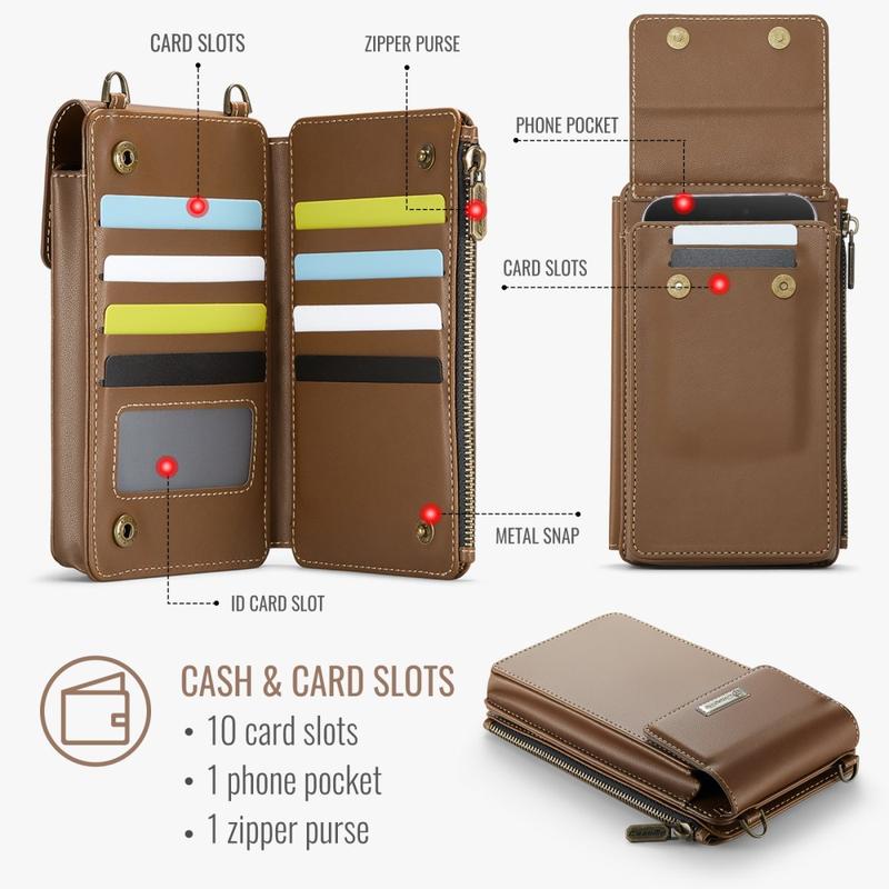 A bolsa para telemóvel em poliuretano Caseme ME50 oferece uma combinação perfeita de segurança, estilo e conveniência. A sua tecnologia de bloqueio RFID e os múltiplos compartimentos garantem que os seus bens essenciais estão organizados e protegidos. Quer seja para uso diário, viagens ou ocasiões especiais, esta bolsa é uma solução versátil e elegante para transportar o seu smartphone e outros objectos essenciais.