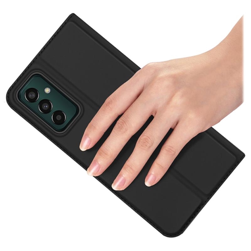 Embeleze o seu Samsung Galaxy M13 com a bolsa tipo flip Dux Ducis Skin Pro, que possui um porta-cartões. Mais segurança e mais elegância, são o que obterá com a ranhura interior para o seu cartão de crédito ou de identidade. O suporte dobrável permite-lhe ver vídeos de forma agradável em mãos livres.