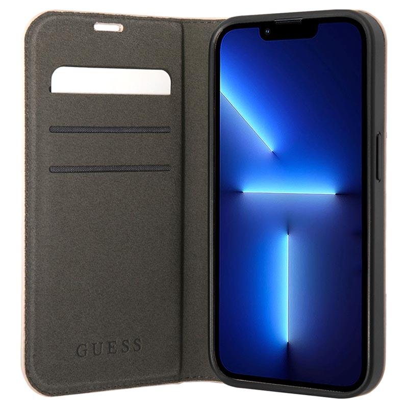• Bolsa tipo Flip Guess 4G Metal Gold Logo para iPhone 14 Plus