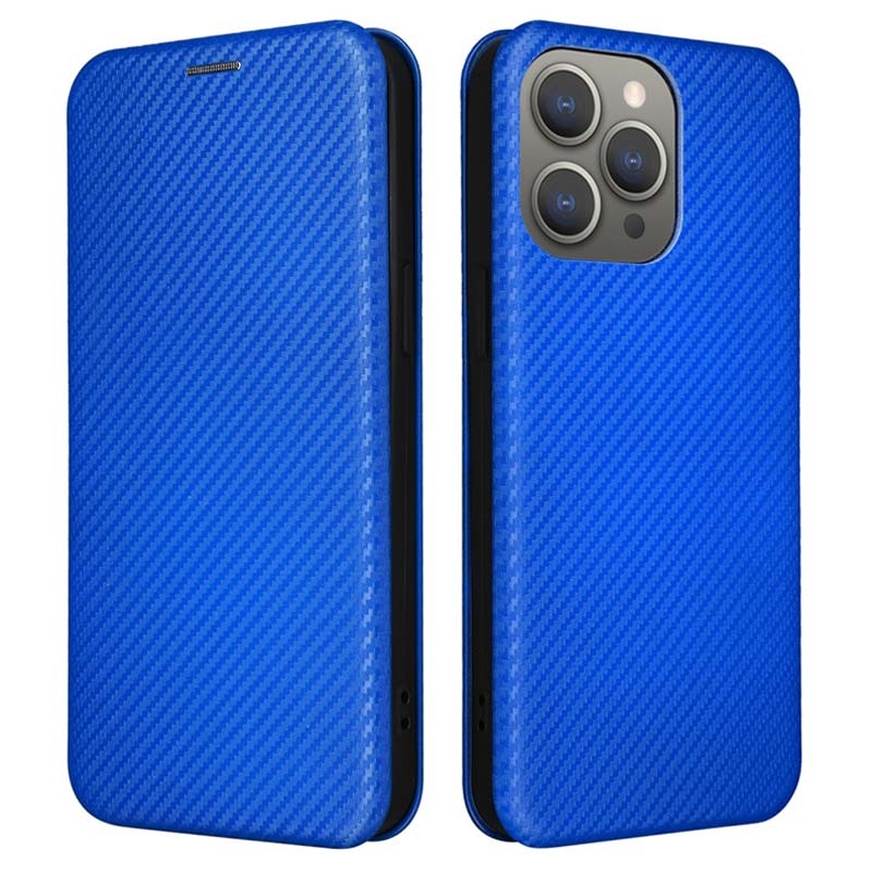 Bolsa Flip para iPhone 15 Pro Max - Fibra de Carbono - Azul