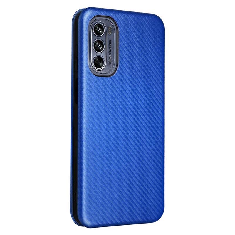 - Bolsa tipo flip com textura de fibra de carbono para o Motorola Moto G62 5G