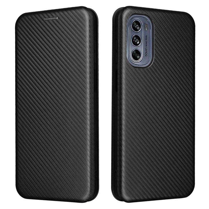 - Bolsa tipo flip com textura de fibra de carbono para o Motorola Moto G62 5G
