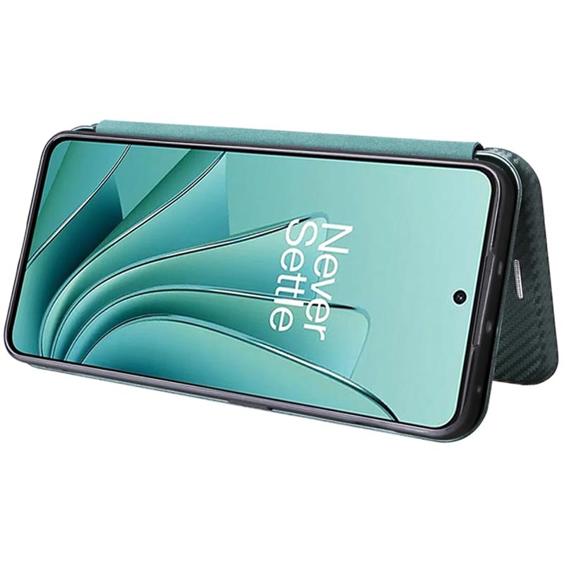 Bolsa Flip para OnePlus Ace 2V/Nord 3 - Fibra de Carbono - Verde
