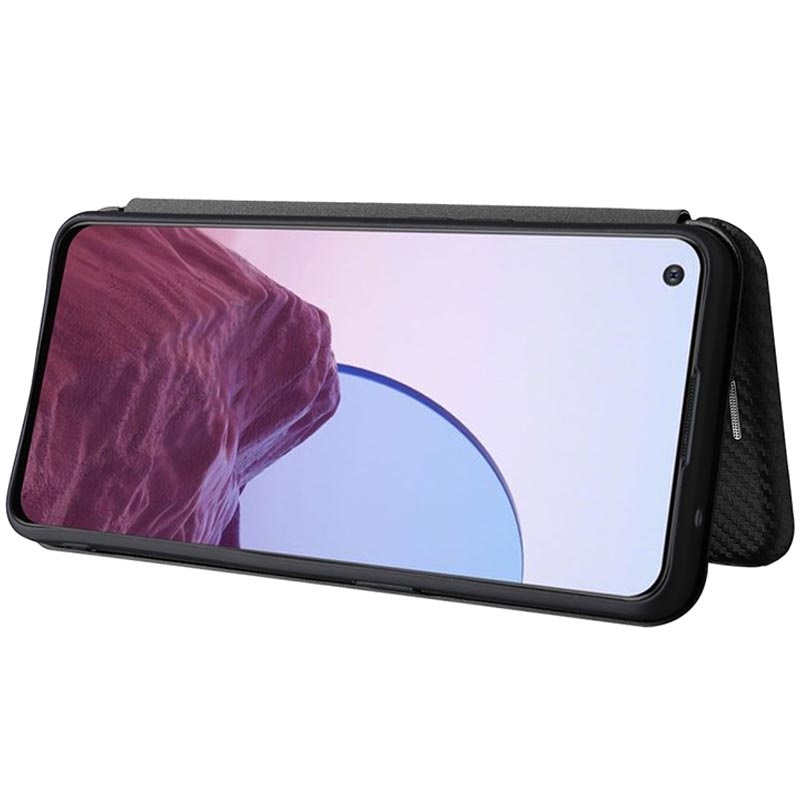 Proteja o seu OnePlus Nord N20 5G com esta bolsa tipo flip com textura de fibra de carbono.