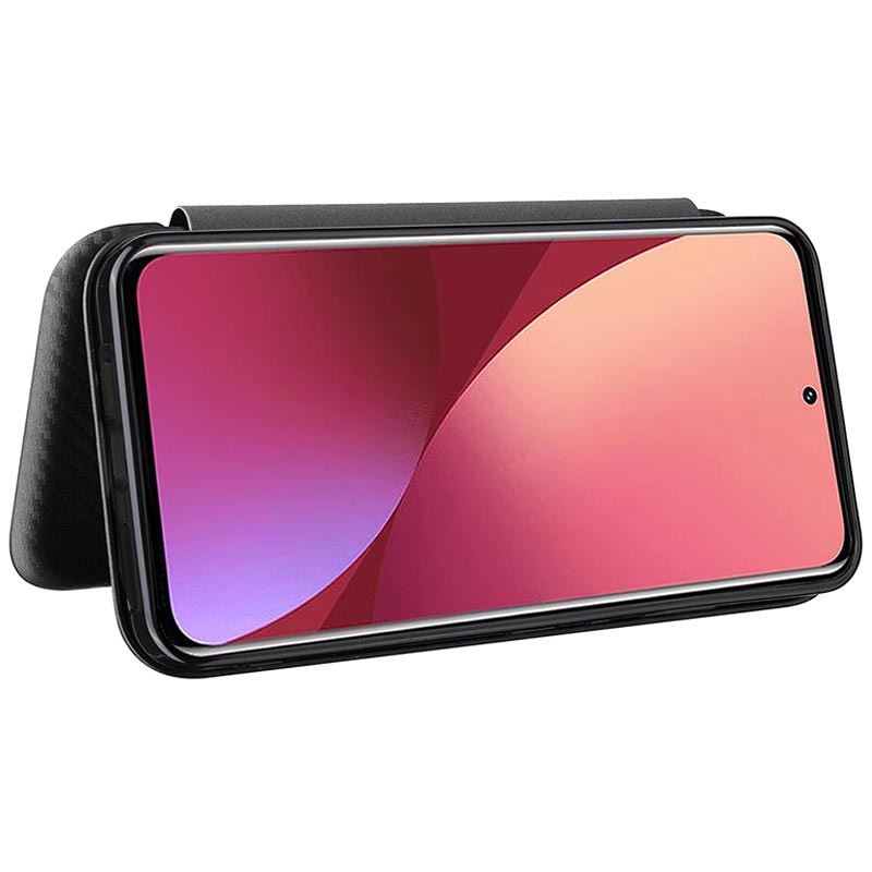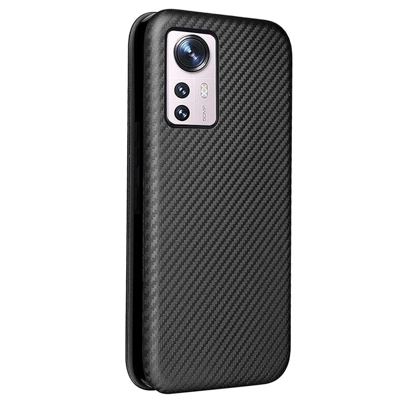 Proteja o seu Xiaomi 12 Pro com esta bolsa tipo flip com textura de fibra de carbono.