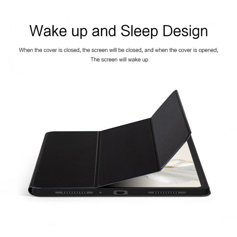 Esteja a assistir um vídeo ou a desenhar com uma caneta no seu Honor Pad 9 Pro, esta bolsa fólio segura-o num ângulo ideal, garantindo uma experiência mais confortável e produtiva. Além disso, a função inteligente de despertar / dormir liga automaticamente o ecrã quando abre a aba frontal da bolsa.