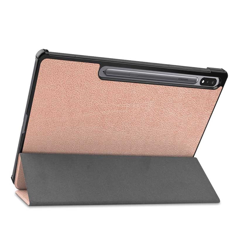 Tenha um visual requintado e toque excelente nas suas mãos, com a sua nova capa fólio de três dobras para Samsung Galaxy Tab S7+, Galaxy Tab S8+. A bolsa fólio fina e leve permite uma operação sem complicações e exibição em ecrã inteiro. Quatro cantos protegem o seu Samsung Galaxy Tab S7+, Galaxy Tab S8+ de riscos e quedas.