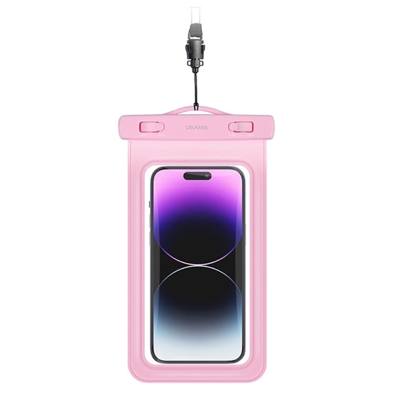 Prepare o seu smartphone para atividades aquáticas! Esta capa impermeável flutuante Usams US-YD011 para smartphones de até 7 polegadas de diagonal de tela é uma solução ideal para manter seu dispositivo seco e protegido na praia, na piscina ou em dias chuvosos.