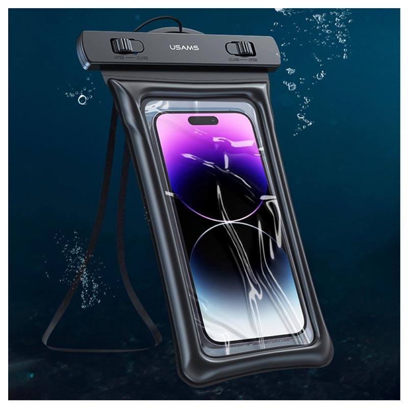 Prepare o seu smartphone para atividades aquáticas! Esta capa impermeável flutuante Usams US-YD011 para smartphones de até 7 polegadas de diagonal de tela é uma solução ideal para manter seu dispositivo seco e protegido na praia, na piscina ou em dias chuvosos.