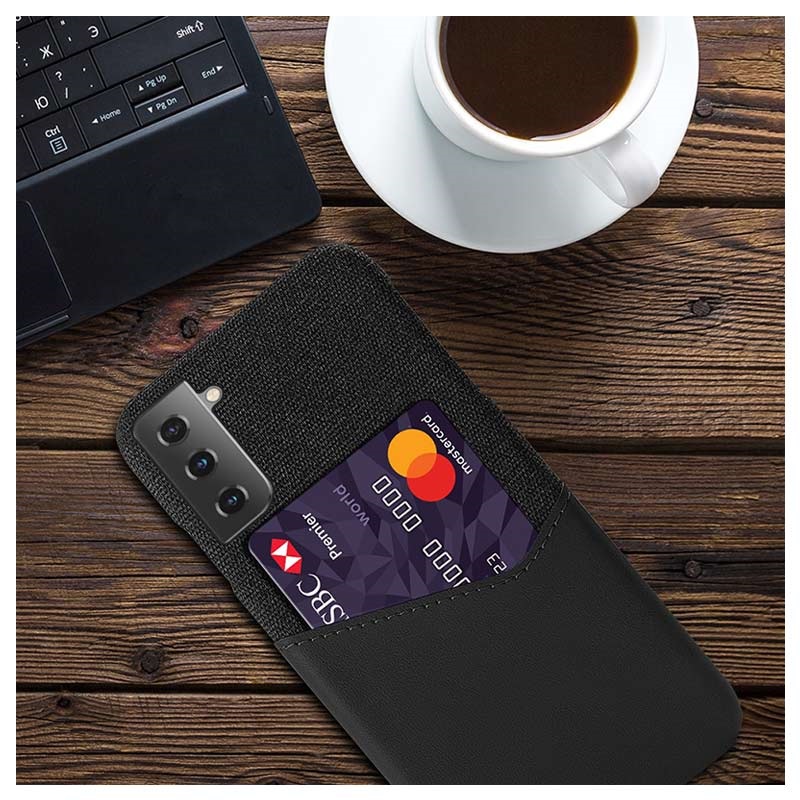 Graças à camada de policarbonato rígido, esta capa ultra fina confere ao seu Samsung Galaxy S21+ 5G rigidez extra, mantendo-o confortável para o bolso. Além disso, a delicada camada de tecido e a ranhura para cartão integradas tornam este acessório moderno e prático.