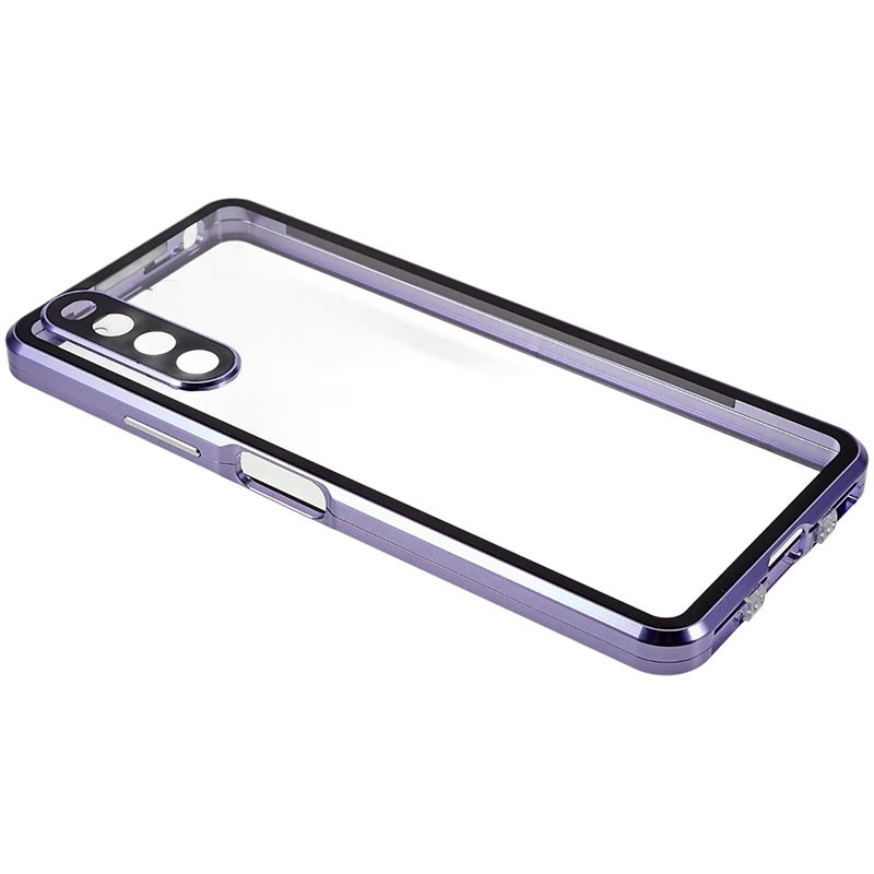 - Capa com estrutura de metal e vidro temperado para a frente e o verso do Sony Xperia 10 IV