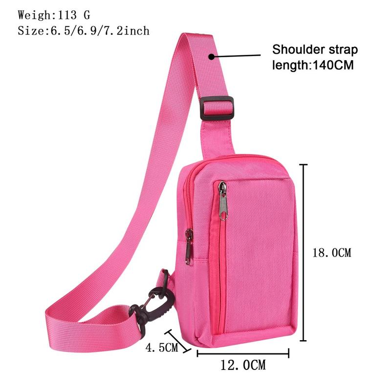 Transporte o seu telemóvel e os seus objectos essenciais com facilidade utilizando esta bolsa de nylon resistente à água para o peito e para o ombro. Concebida para uma utilização casual ou para viagens, adapta-se a telemóveis até 7,2 polegadas, oferecendo proteção e estilo. A alça ajustável e o design leve garantem conforto, enquanto o material de nylon durável mantém os seus pertences protegidos dos elementos.