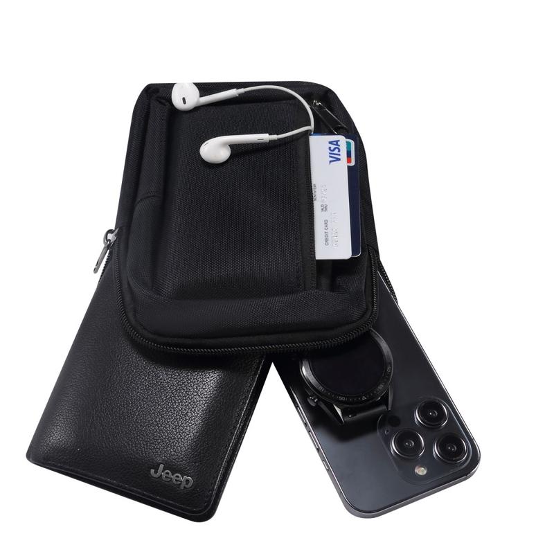 Ideal para viagens, caminhadas ou deslocações diárias, oferecendo acesso conveniente ao telefone e armazenamento extra para pequenos itens.