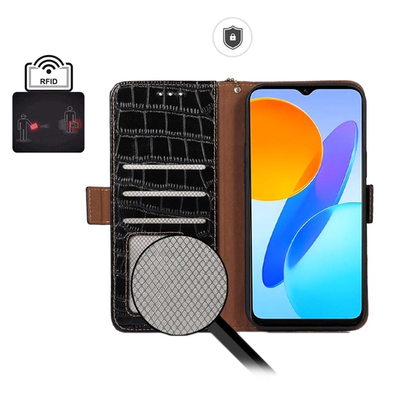 Bolsa de Pele Tipo Carteira Crocodile com RFID para Honor X20 SE